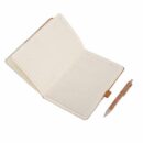 an eco friendly notebook made from a combination of fabric and cork materials. Also includes a matching eco friendly pen made from Cork and Eco-Friendly Wheat Straw. Packed in a Eco-Friendly Gift Box.