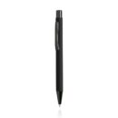 a notebook and pen set consisting of a hard cover soft touch PU notebook with an anti-microbial metal ballpoint with soft rubberized finish and matt gun metal trims. The round cornered notebook consists of 160 ruled pages, 70 gsm with matching colored 3mm elastic closure, a bookmark and a pen loop. The pen has a 1200 m writing length and German Dokumental® Ink. Packed in a white gift box.