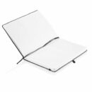 a notebook and pen set consisting of a hard cover soft touch PU notebook with a matching color pen with geometric design. The round cornered notebook consists of 160 ruled pages, 70 gsm with matching colored 3mm elastic closure, a bookmark and a pen loop. Packed in a nice white gift box.