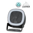 a RCS-certified recycled 4-in-1 bluetooth speaker (5W), 15W wireless charger, phone stand, and ambient lamp light. It is made of 58.96% RCS recycled plastic and recycled leather. It comes with a Type C cable that extends up to 100CM. Packed in a recycled kraft gift box. A great gift for the office or home use.