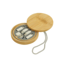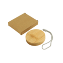 Eco-Conscious portable multi-charging cable set in a round bamboo case.