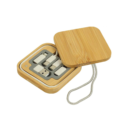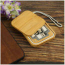 Eco-Conscious portable multi-charging cable set in a square bamboo case.