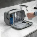 Polyester Travel Toiletry Bag is a portable, large capacity, water-resistant, anti-fade toiletry bag with zipper closure. a men’s multifunctional vanity tools and essentials bag with many compartment.